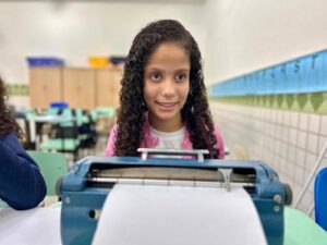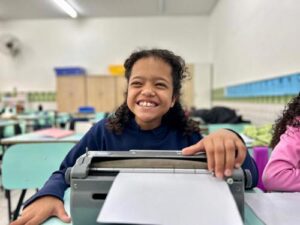 Para Yasmin Maria da Silva, de 10 anos, aluna do 6º ano com cegueira, a volta às aulas tem sido marcada por novas experiências e amizades. “Eu estou gostando das aulas, materiais e estou fazendo amigos novos como a Ana Júlia.”, contou.
